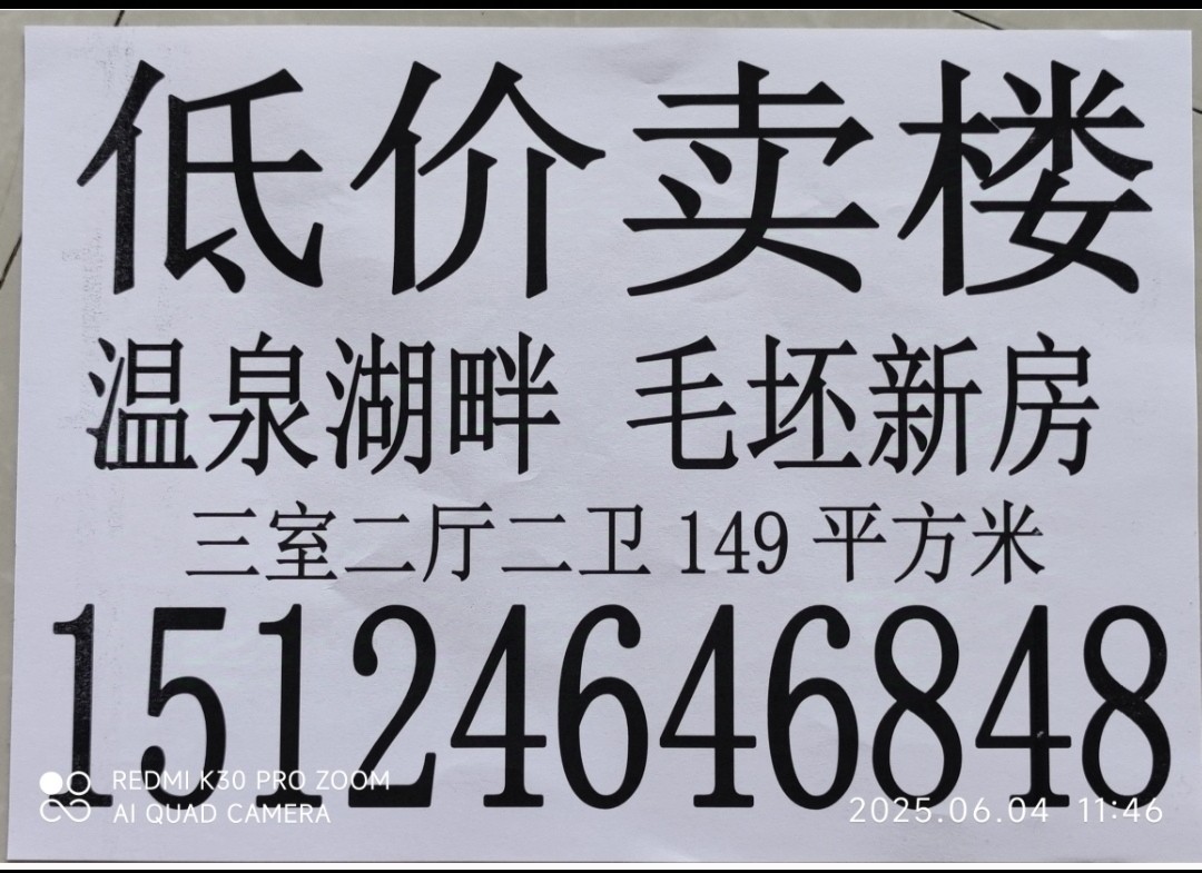 温泉湖畔小区,肇东市高档社区。149平毛坯新房着急出售!三室两厅两卫,典型的大H格局。三个南窗户三个北窗户,独立厨房带北窗户。房本在手。欢迎联系看房或者看视频。