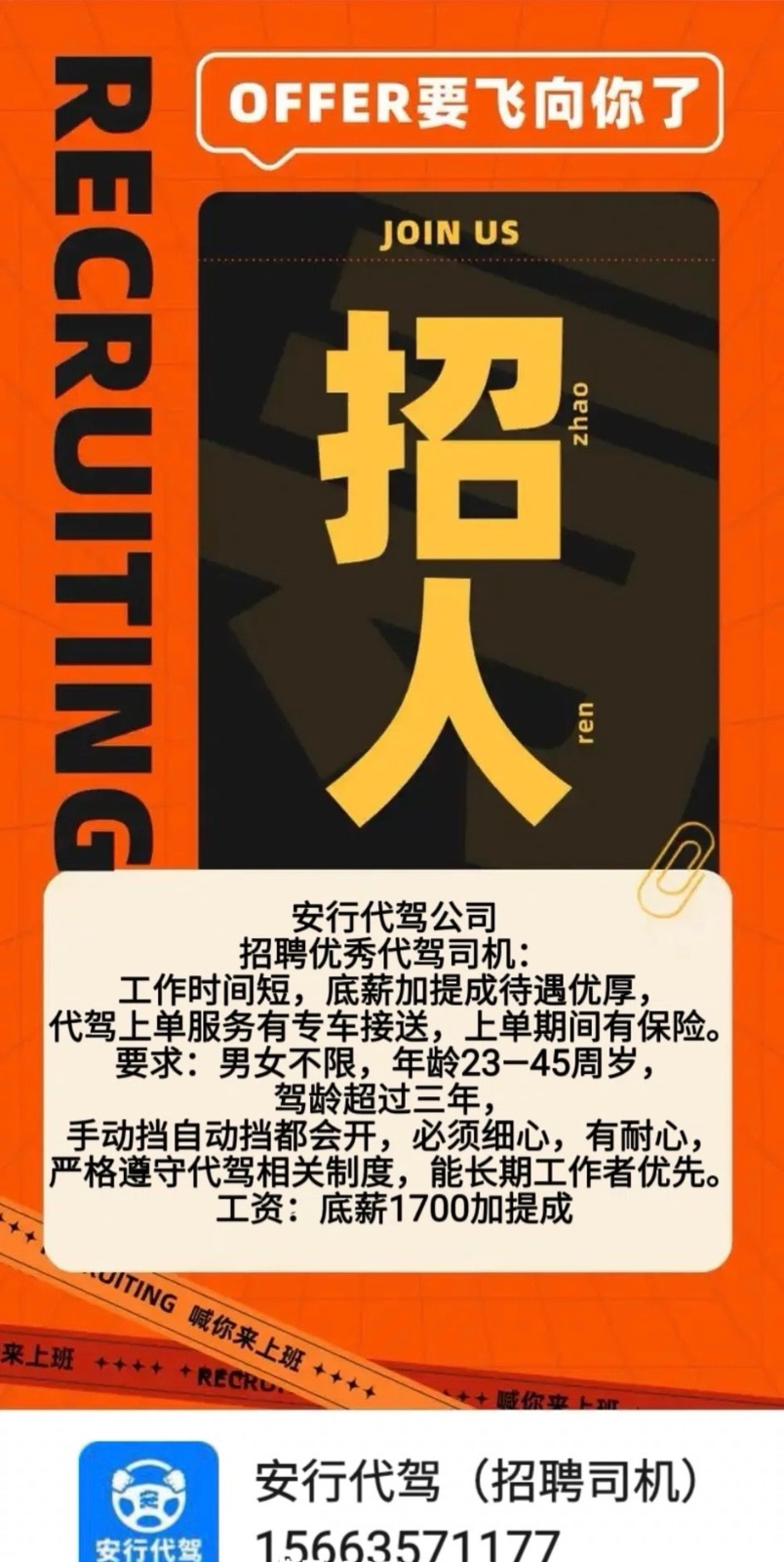 当前位置:首页 > 招聘求职 > 招聘 > 安行代驾公司招聘代驾员