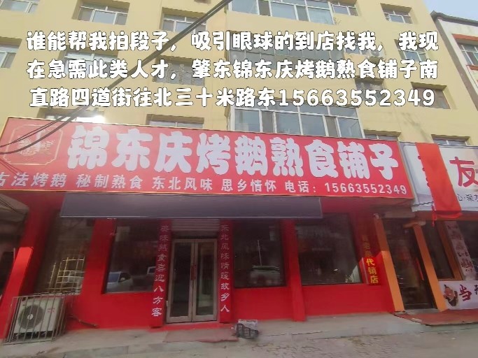 为店面拍摄短视频,制作剪辑,提供素材,按照视频数量和质量结账,只要有这个才能和经验,联系我15663552349肇东市南直路四道街往北路东锦东庆烤鹅熟食铺子